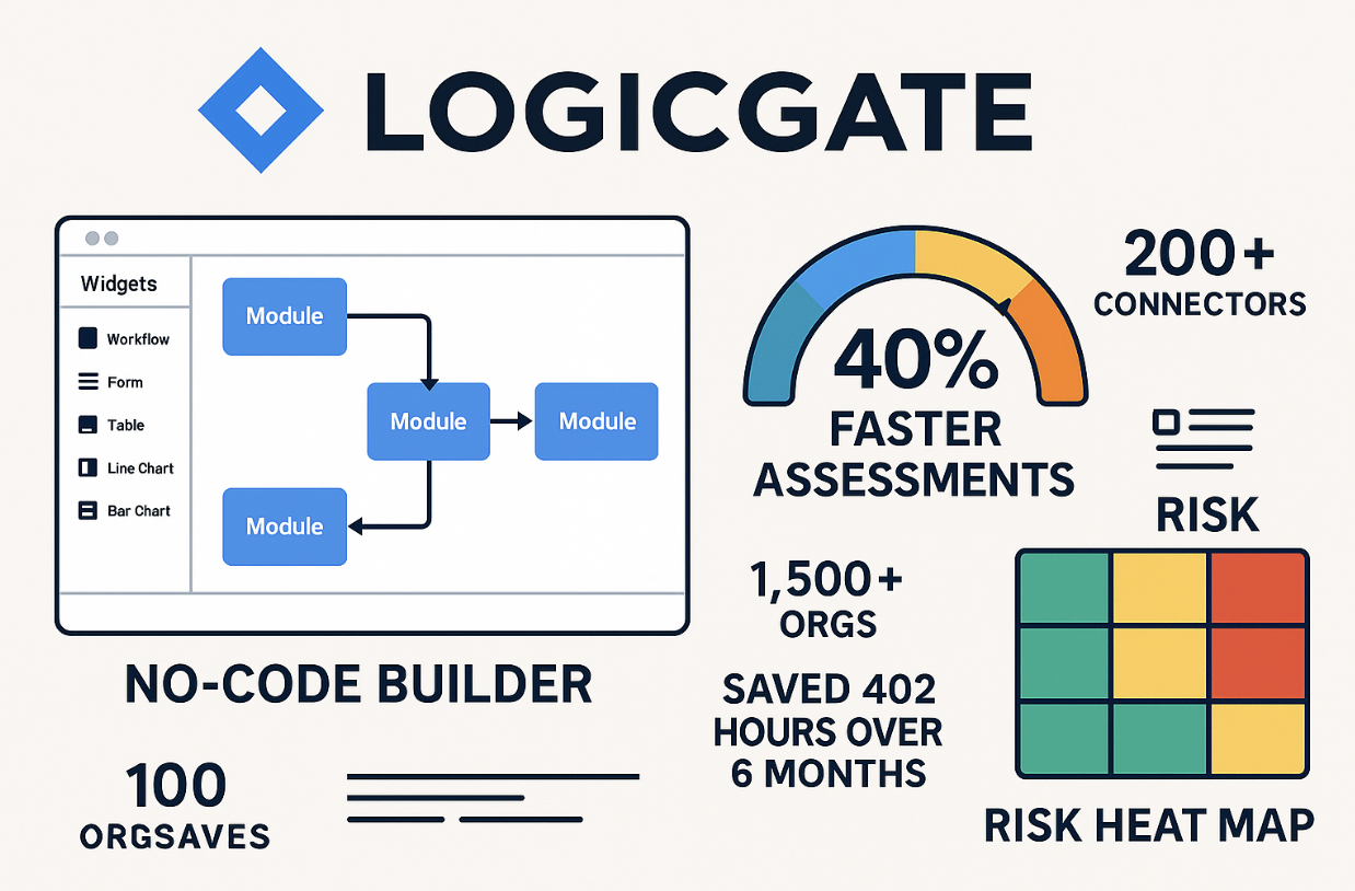 LogicGate follows a no-code approach to GRC. Drag-and-drop builders let teams launch custom workflows without waiting on IT, which helps explain why more than 1,500 organizations now rely on Risk Cloud.