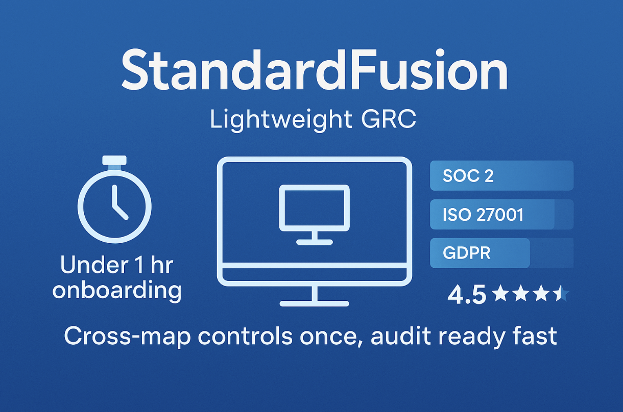 StandardFusion proves that GRC can stay lightweight. The cloud-native app onboards new teams in under one hour, according to customer surveys.