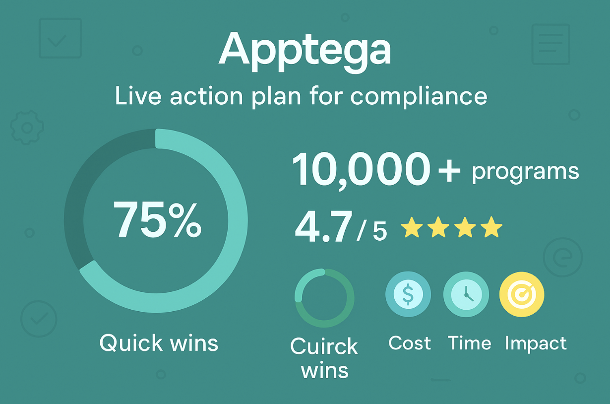 Dashboards feel like a fitness tracker. Progress rings move as tasks close, surfacing quick wins and highlighting stubborn gaps. Lightweight questionnaires and API feeds refresh scores continuously. If a control slips, Apptega flags it and recommends your next step.