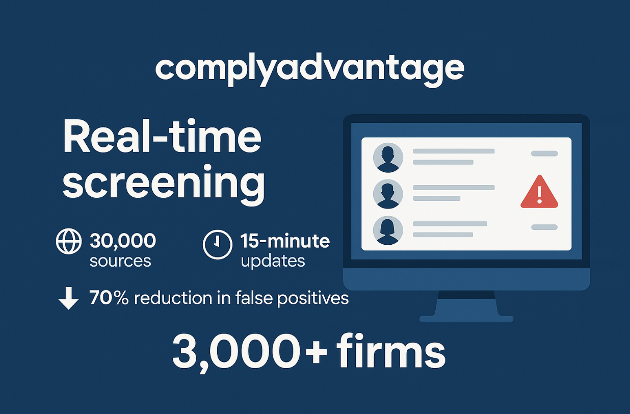 ComplyAdvantage focuses on financial-crime risk. The platform screens customers and transactions against real-time sanctions, watchlists, and adverse-media feeds, flagging suspicious activity before regulators step in.