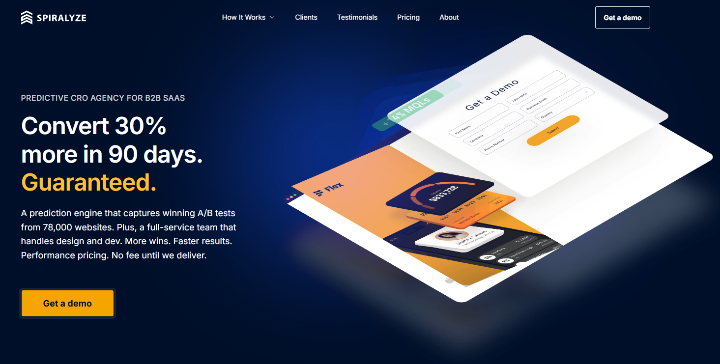 Spiralyze is a powerhouse in predictive CRO. Their “engine” crunches data from 78,000+ A/B tests, so they don’t just guess what to change, they know what’s most likely to work. Instead of fiddling with button colors, they redesign entire pages and test them until the numbers prove out.