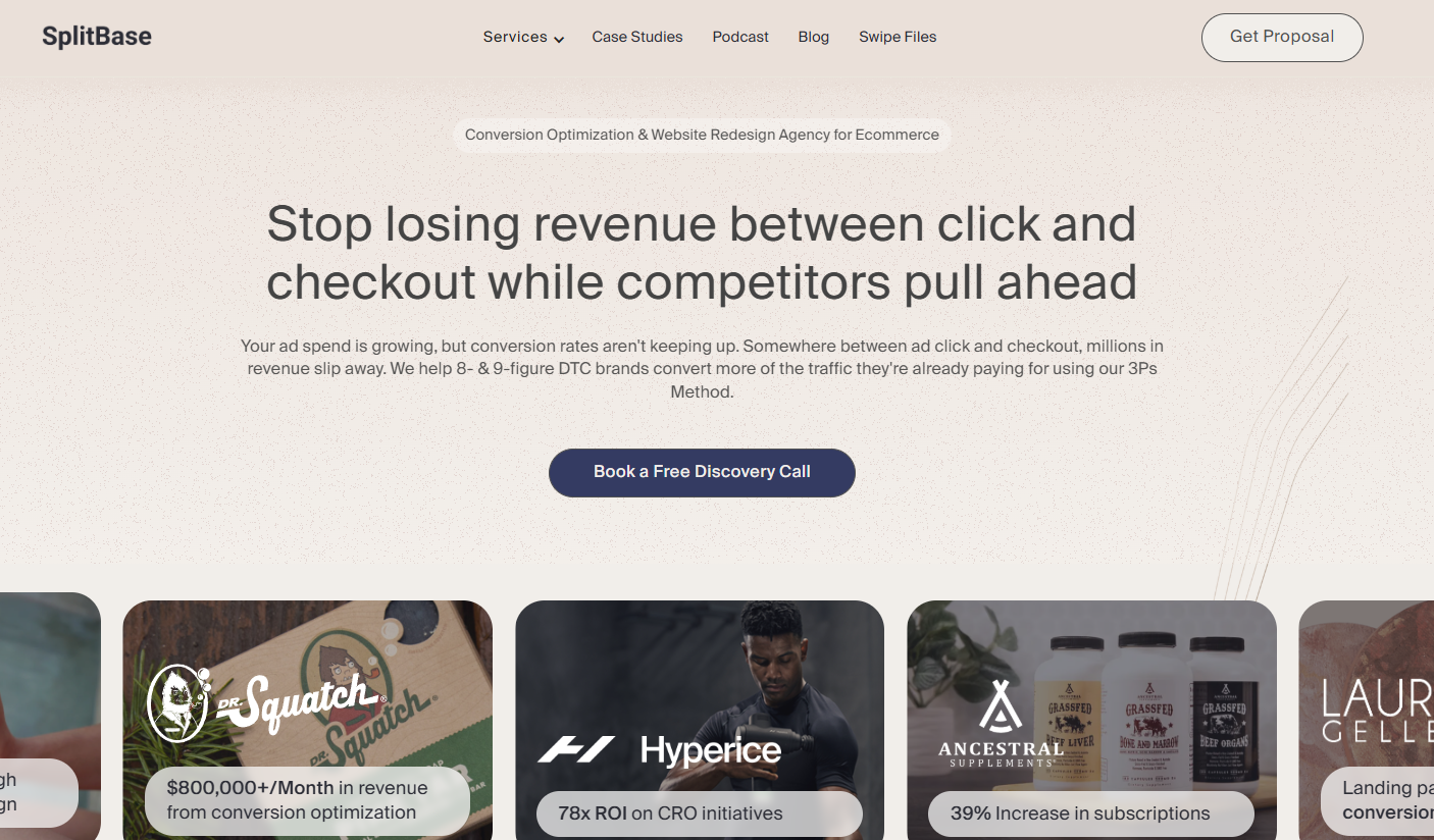 SplitBase is tailor made for DTC brands (that's direct-to-consumer), with a heavy Shopify presence. They go beyond simple A/B testing by starting with deep customer research. They interview users, analyze behaviors, review recordings, and build experiments based on actual customer insights. All in teh same house.