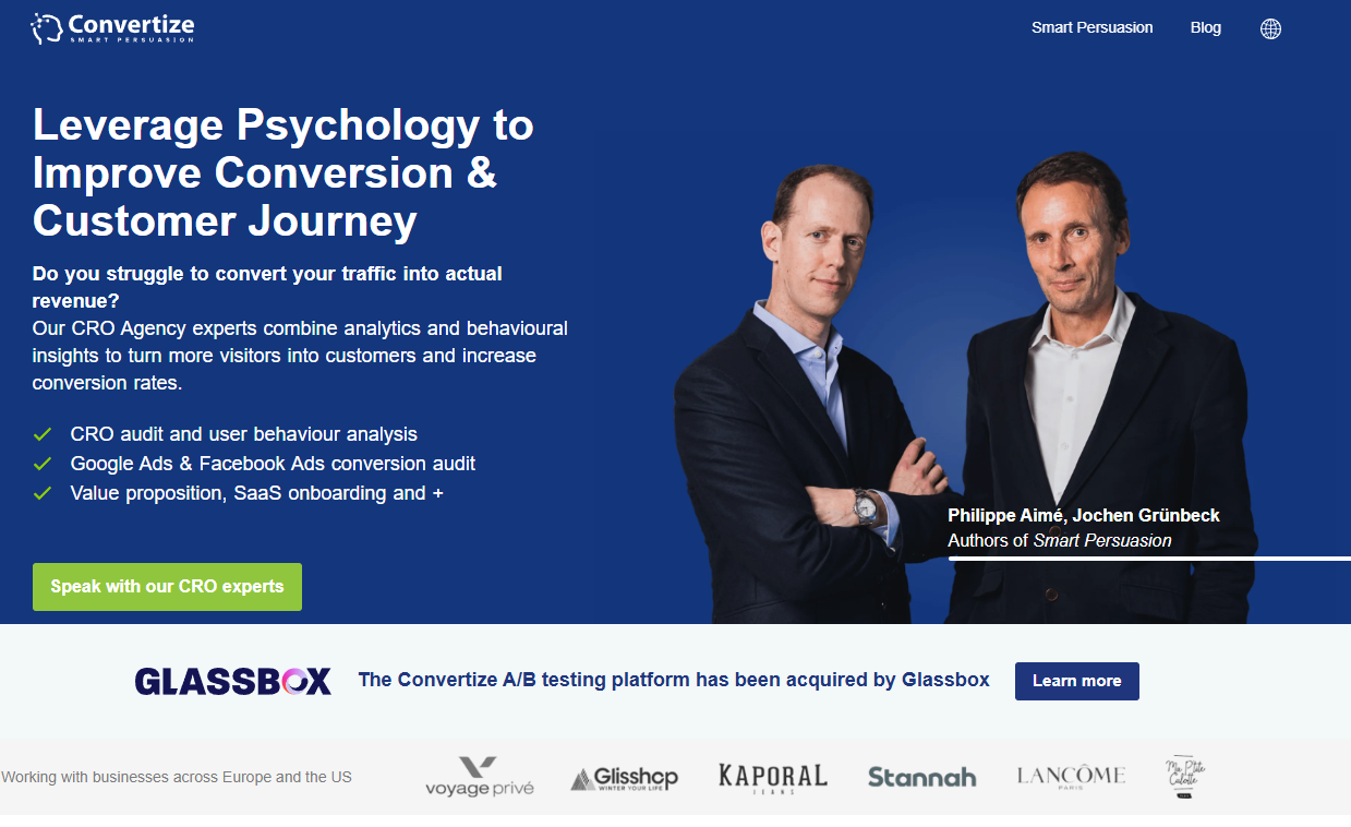 If you want a bit more on the psychology side, Convertize blends CRO with behavioral science. Their approach revolves around “nudges” and persuasive design tactics that influence customer behavior without being pushy. For Shopify stores, this can mean designing product pages that naturally encourage add to cart or checkout flows that gently nudge customers to complete their purchase.