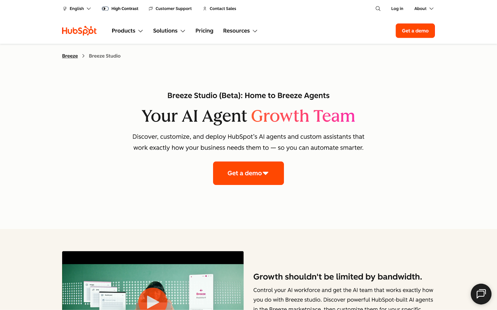 | Breeze Customer Agent | HubSpot users wanting CRM-integrated support | Unified AI across marketing, sales, and service | $1 per conversation + HubSpot Hub subscription |