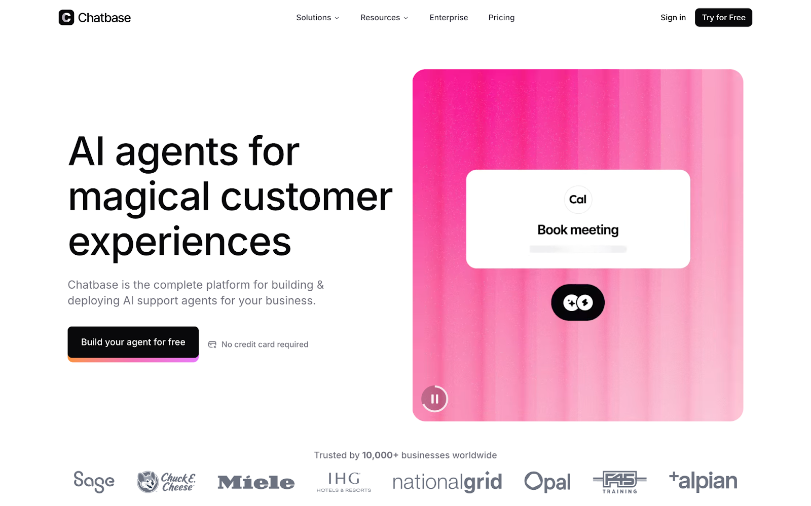 | Ada | Large enterprises with 300K+ annual conversations | Agentic customer experience with playbook automation | Custom pricing starting at $30,000 per year |