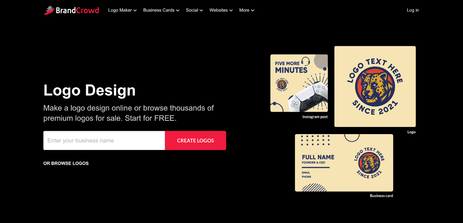 Brandcrowd's free plan provides everything you need to design and experiment before committing to a purchase.