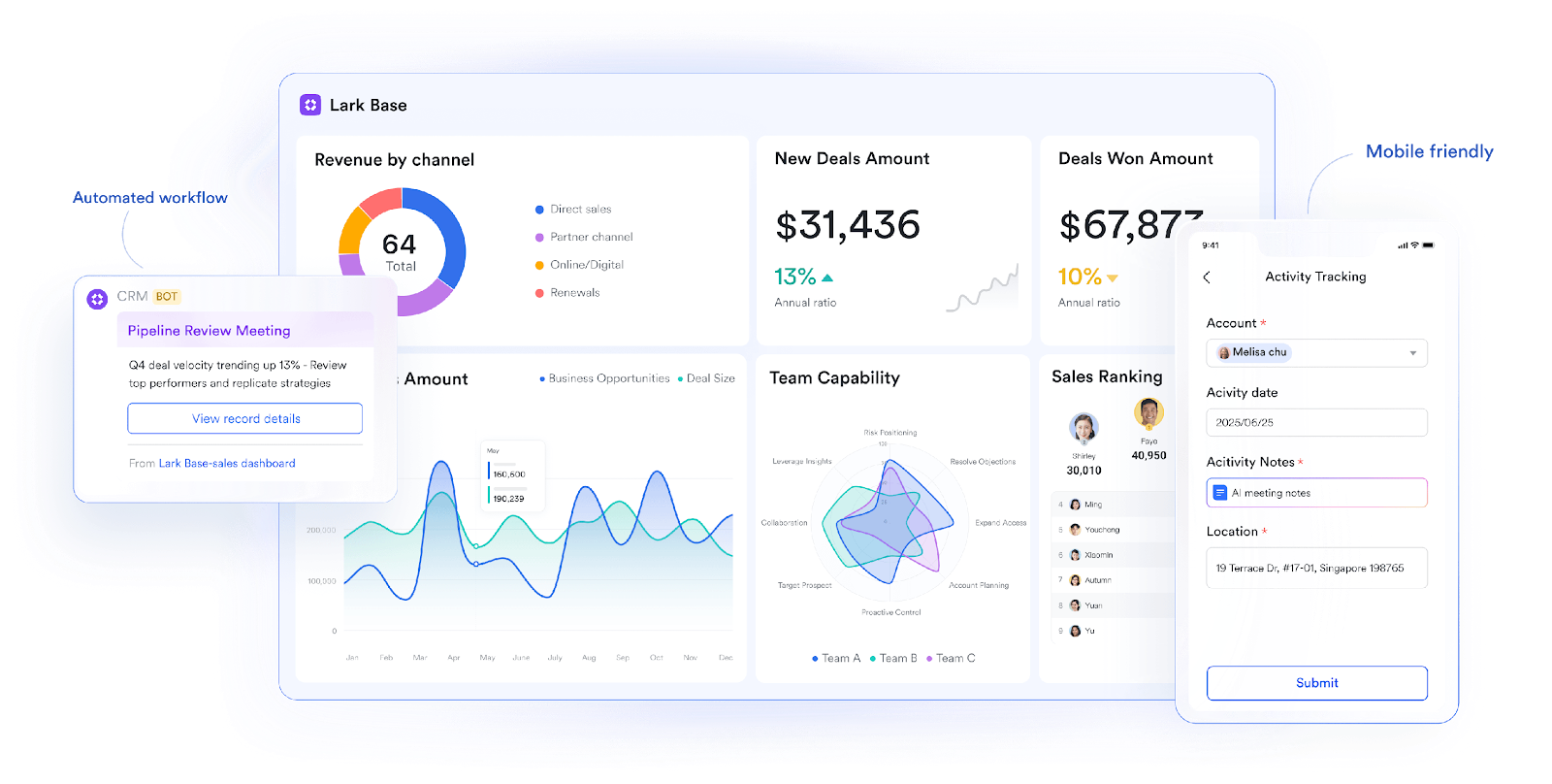 Data that is scattered out is one of the major problems that might slow down growth. It's challenging for teams to work together when they use spreadsheets, emails, and other technologies that aren't connected. Lark Base solves this challenge by giving businesses a shared system of record that changes as they develop.