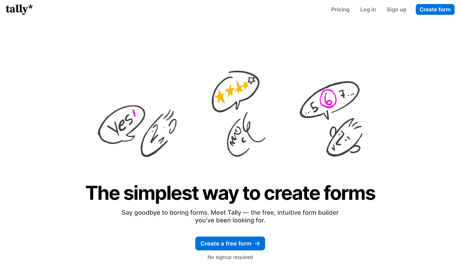 Tally offers a clean, text-first editor with AI assistance in 2026. Forms are created by typing questions and content directly into the interface, similar to drafting a document.