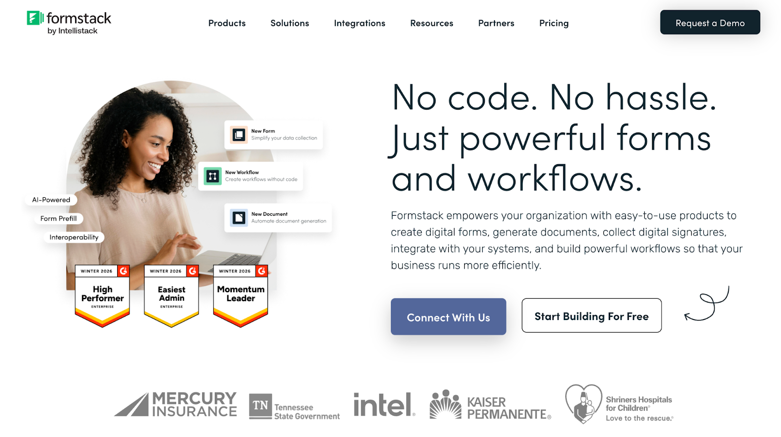 Formstack focuses on structured workflows and compliance-oriented data collection in 2026. It supports AI-assisted creation along with approval flows and document automation.