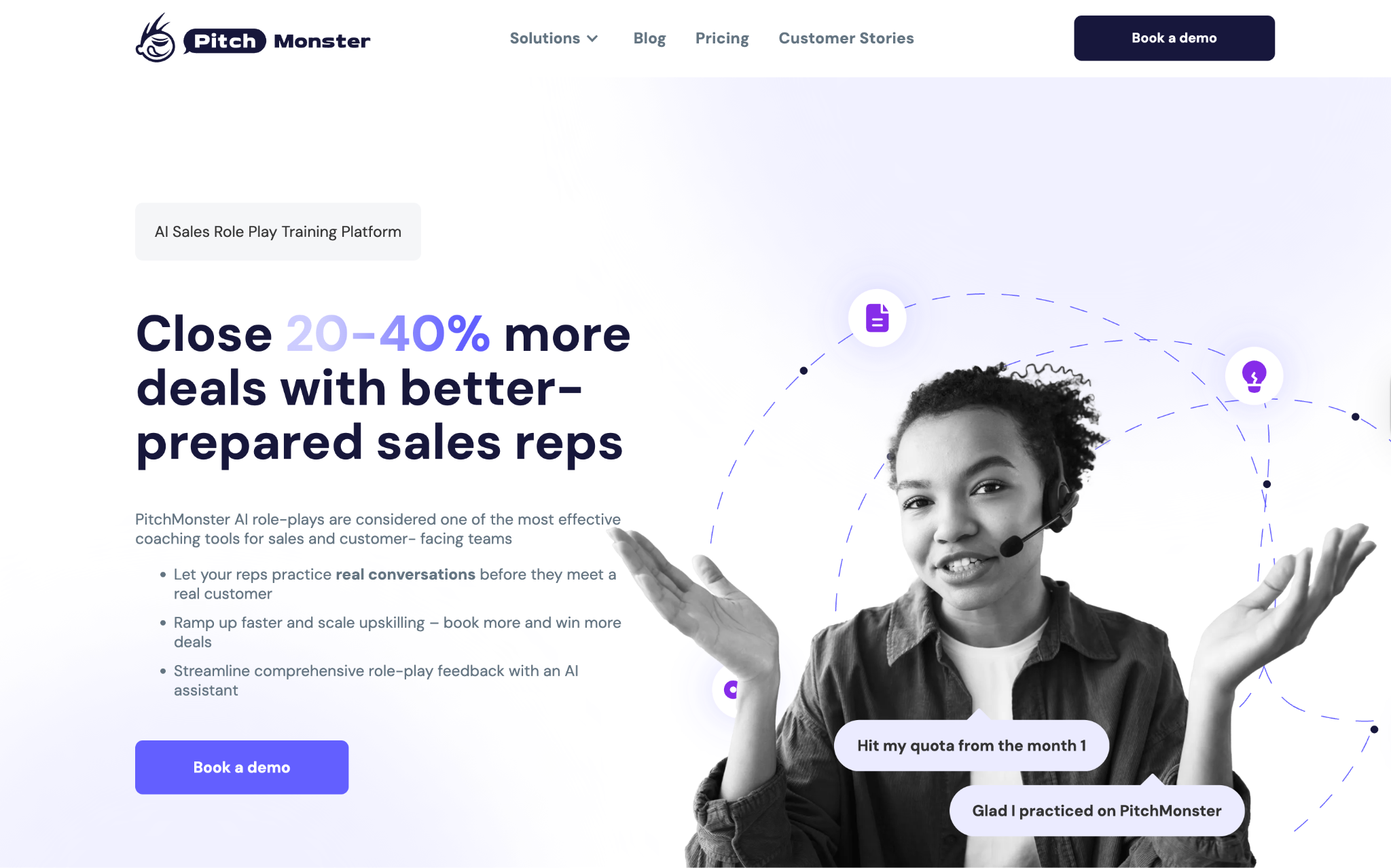 PitchMonster specializes in AI-powered role-play training designed to help sales teams close 20-40% more deals through realistic conversation simulations and detailed feedback. The platform positions itself as a "sales Grammarly" for spoken conversations.