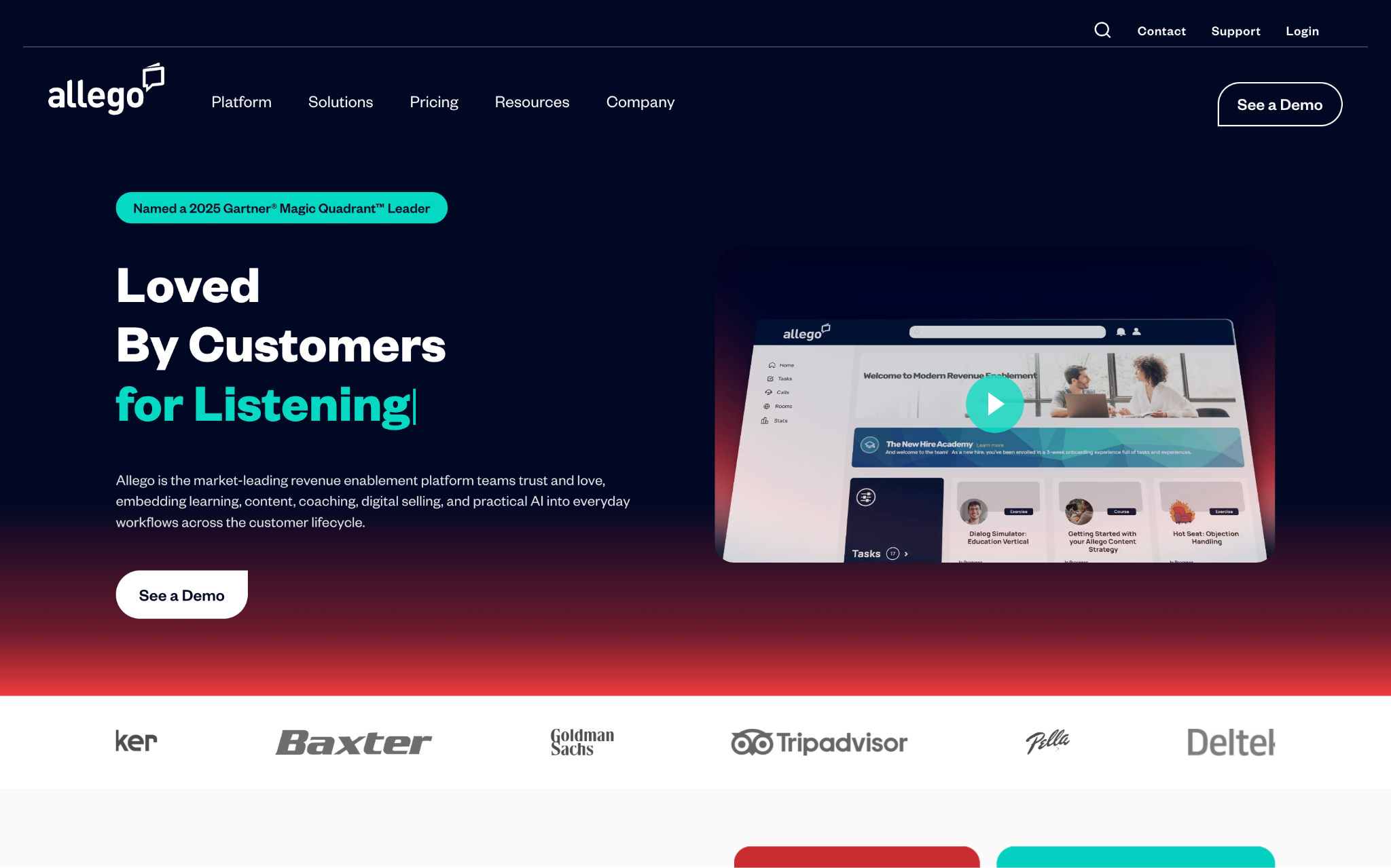 | Allego | Revenue enablement consolidation | Practical agentic AI | Custom pricing | $15-30/month | 4.3/5 (1500+ reviews) |