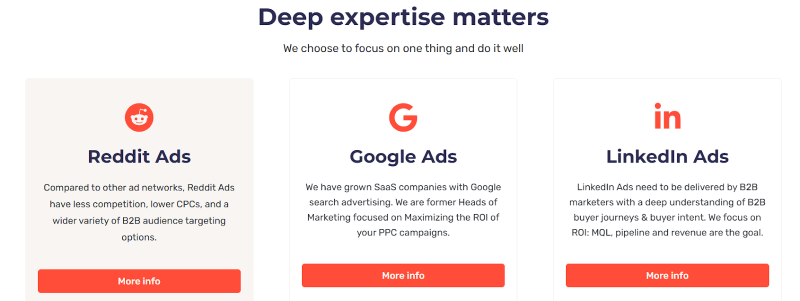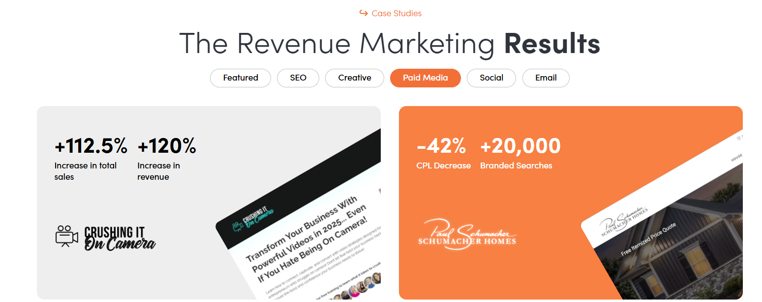 Their wider agency model means you can layer SEO, email, and organic services onto your paid campaigns. However, they serve multiple verticals (including ecommerce), so the SaaS-specific depth may not be as deep as agencies that work exclusively in the space.